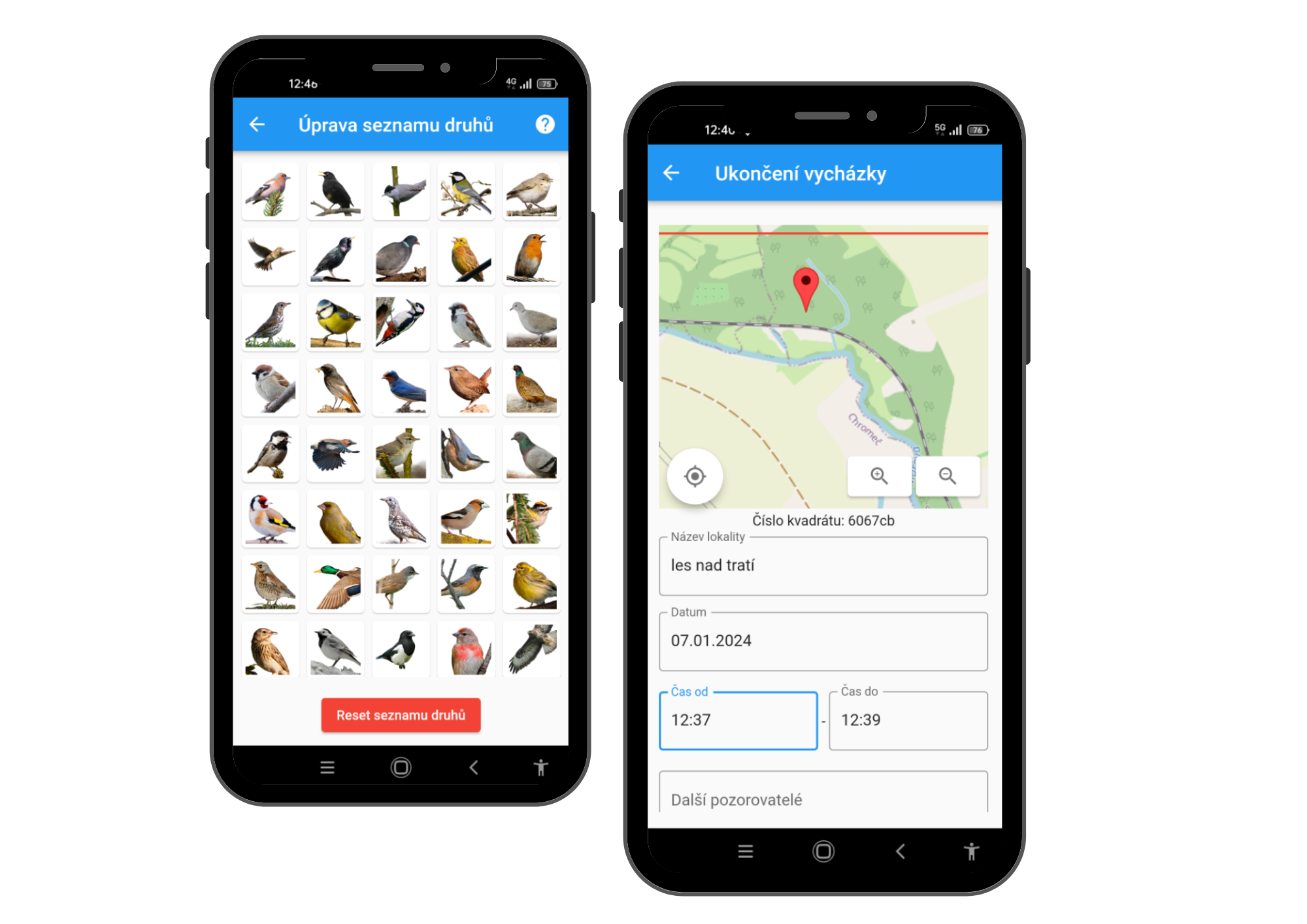 Uživatelské rozhraní jsme od základu navrhli pro specifické potřeby ornitologů. Důraz byl kladen na extrémní rychlost zadávání dat a ergonomii, aby aplikace spolehlivě sloužila i v náročných venkovních podmínkách a špatném počasí.
